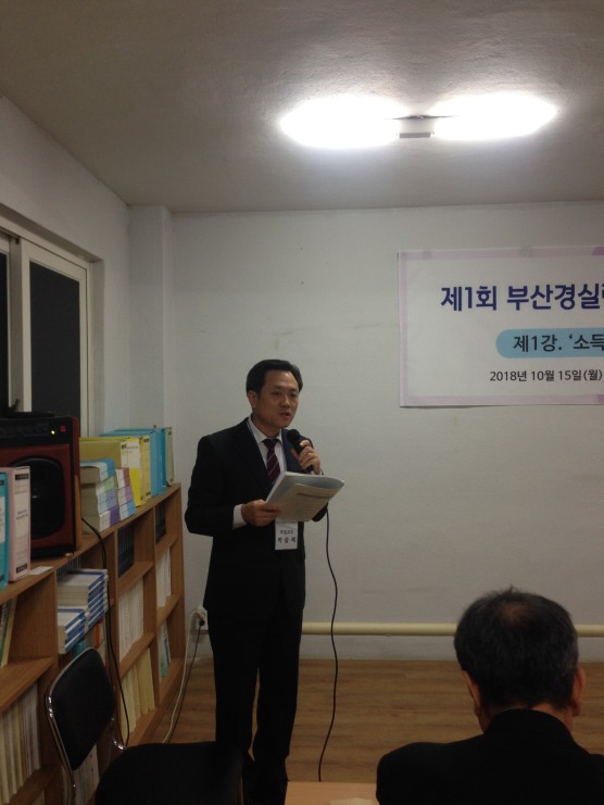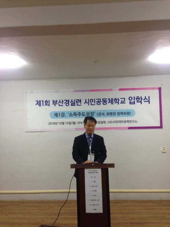 입학식에 이어 제1강 소득주도성장을 주제로 최병천 위원의 강연이 있었습니다.