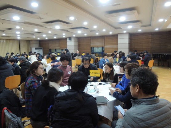 2부 회의는 도한영 사무국장의 진행으로 각 분야별(10개 분과. 복지건강, 교육, 도시재생, 일자리서민경제, 사회적경제, 문화축제관광, 여성가족, 환경에너지, 청년, 지방자치거버넌스) 모임을 통해 시민정책단 각자가 생각하는 정책을 제안하고