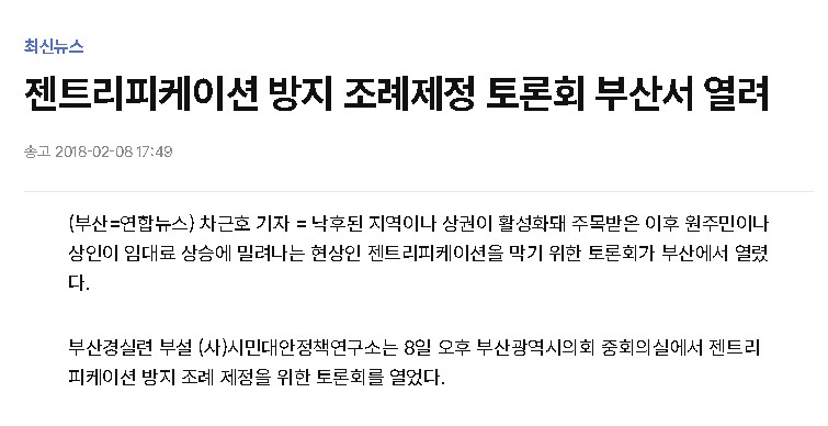젠트리피케이션 방지 조례제정 토론회 부산서 열려